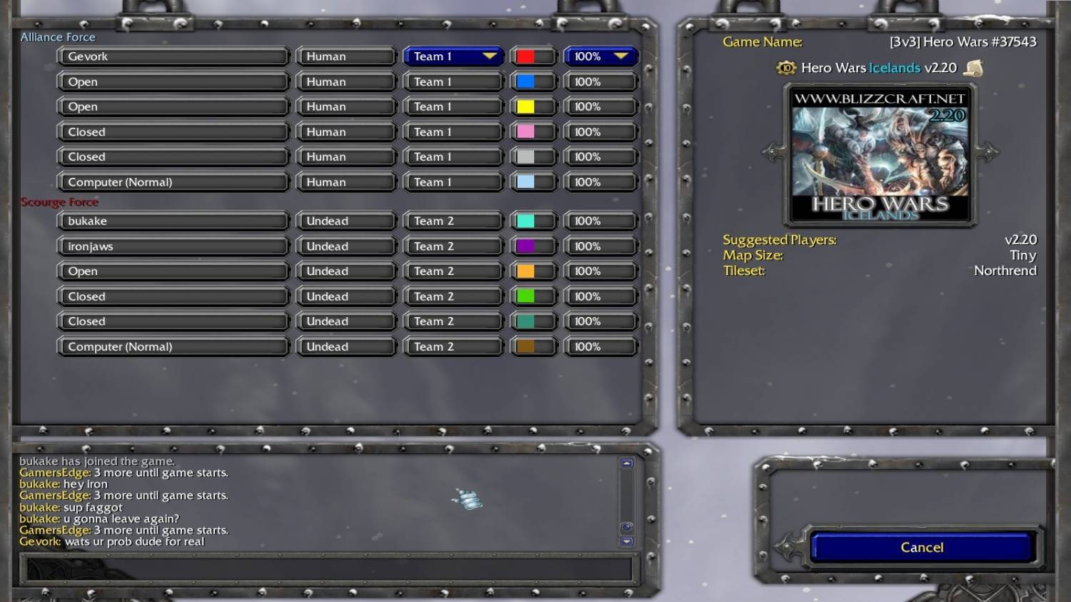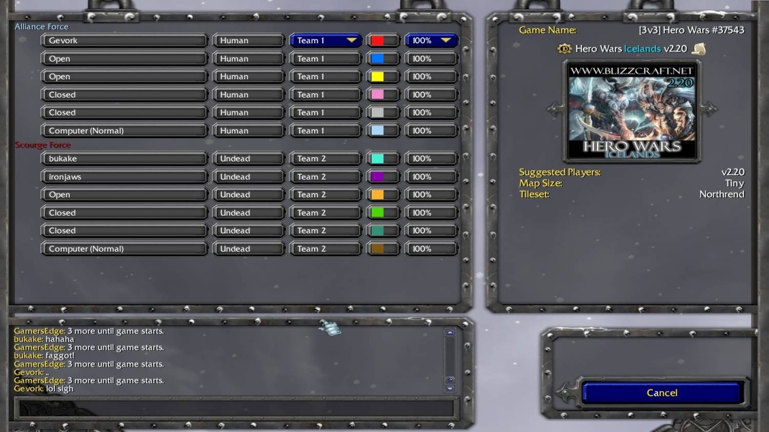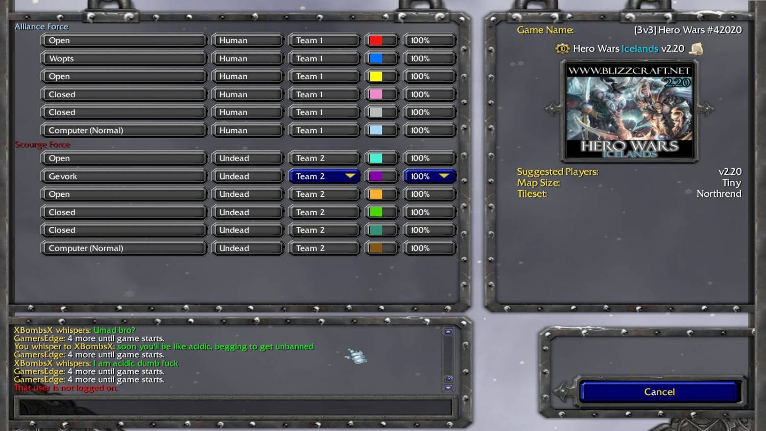 | User requesting ban: pilgsandebs4eva User deserving ban: Gevork Realm: USWest Bot: Gamersedge30 Reason: Flaming Time of Offense: Entire game Game name: [3v3] hero wars #46363 or #46364 (one of those two)